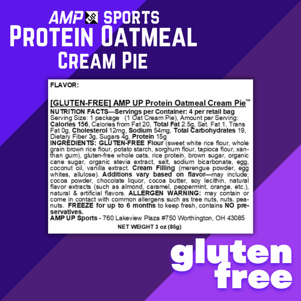 SPECIAL ORDER BATCH of GLUTEN-FREE AMP UP Protein Oatmeal Cream Pies = 4 Bags of Cream Pies (containing 4 Cream Pies per bag)