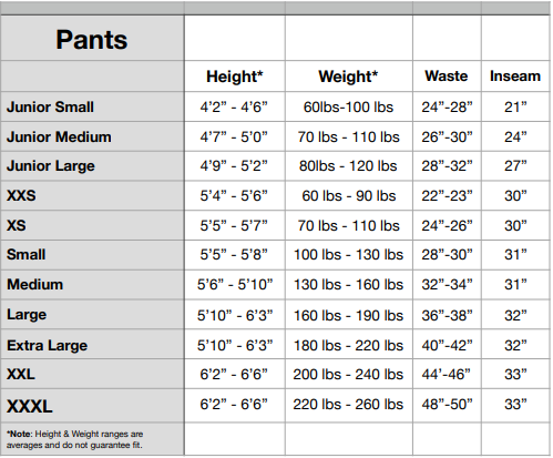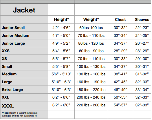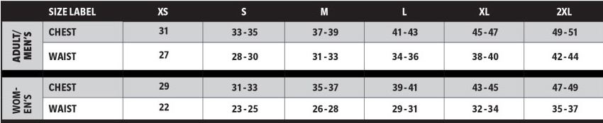 TRACK TANK + SHORTS size chart